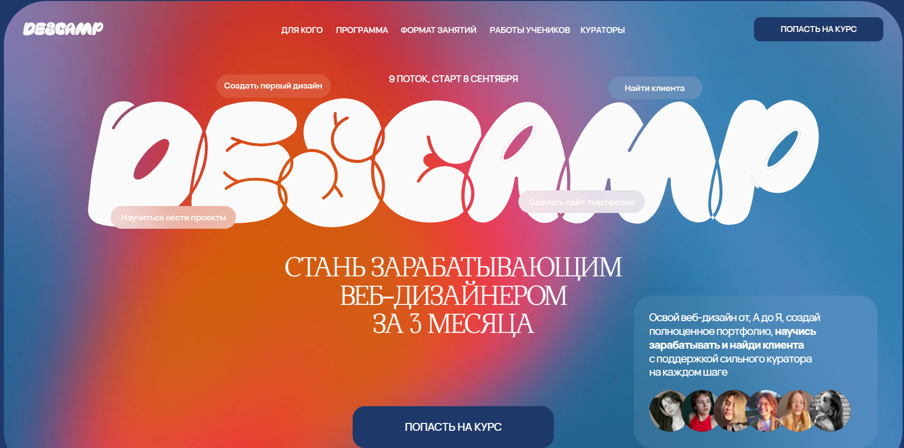 И снова встречаем тренд на креатив — в этом году мы уже увидим много сайтов с необычной типографикой. Сюда относится все, что связано с креативными шрифтами, «вау»-эффектами и анимациями на заголовках. Но как показывает история дизайна — чем необычнее тренд, тем быстрее он угасает, поэтому по моему прогнозу он надолго с нами не задержится.